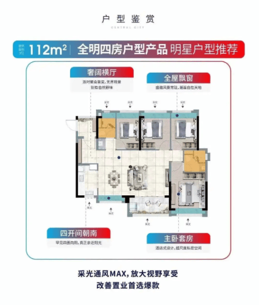 跟着二孩、三孩政策的铺开,四房户型成为了很多家庭的刚需。合生地方城112㎡的四房两卫户型,精准对准了这一市场需求。LDK(客餐厨)一体化设想,将客堂、餐厅、厨房打通,构成了一个庞大的家庭焦点勾当区。一家人能够正在这里一路做饭、吃饭、聊天、逛戏,促进相互的豪情。阔绰的阳台毗连客堂和次卧,采光通透,视野宽阔,是晾晒衣物、养花种草的绝佳场合。